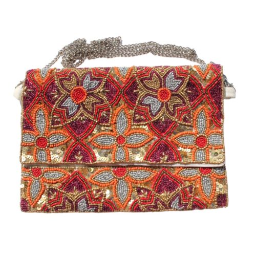 This vibrant beaded bag is a lively and colorful accessory that’s perfect for adding some fun to your outfit. Its intricate beading creates a unique and playful design that’s sure to catch the eye. The bright colors and mix of patterns create a dynamic effect that exudes energy and positivity.