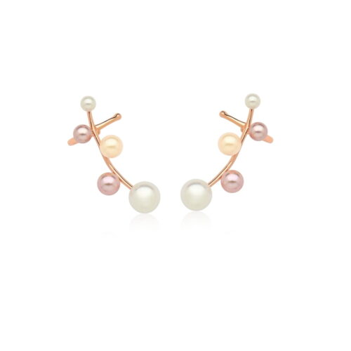 18K Gold Plated with Rose Ear Cuff Earring with Pearls in Four Shades