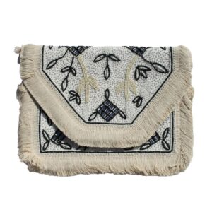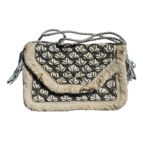 This cream boho bag with shells is a charming and beachy accessory that’s perfect for adding a touch of seaside flair to your outfit. The bag features a soft cream color and is embellished with a variety of shells and beads, creating a delightful and whimsical effect.