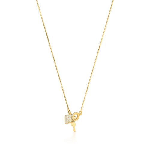 18K Gold Plated Necklace with Padlock Pendant and Gold a Key